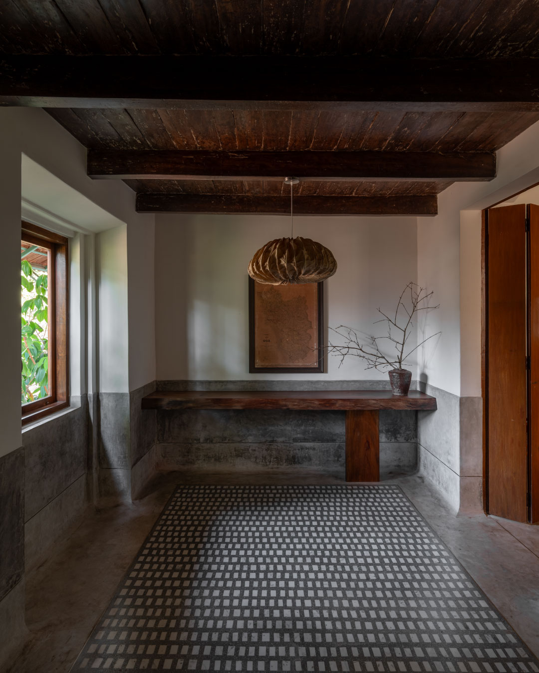 Right from our initial discussion we knew that we were creating something that would need to maintain a fine balance between the old and the new. While from the outside with its verandah, arched windows, and pitched Mangalore tiled roof it looks like any other Goan home, the insides are quite atypical of one.