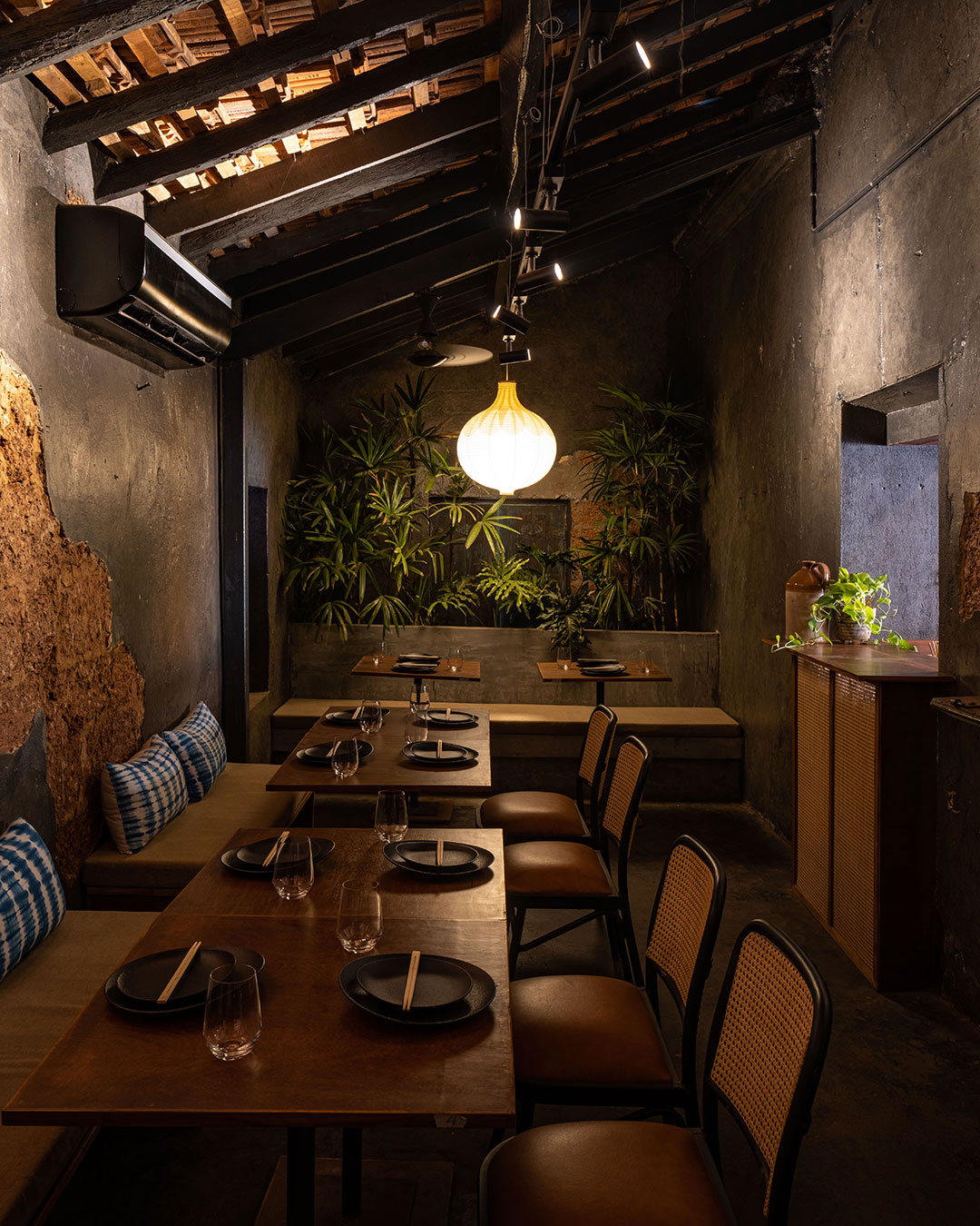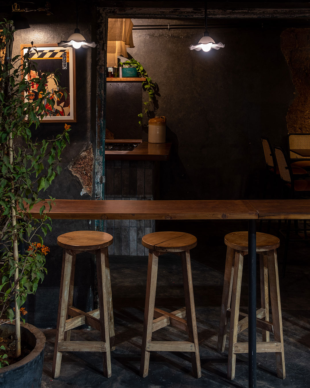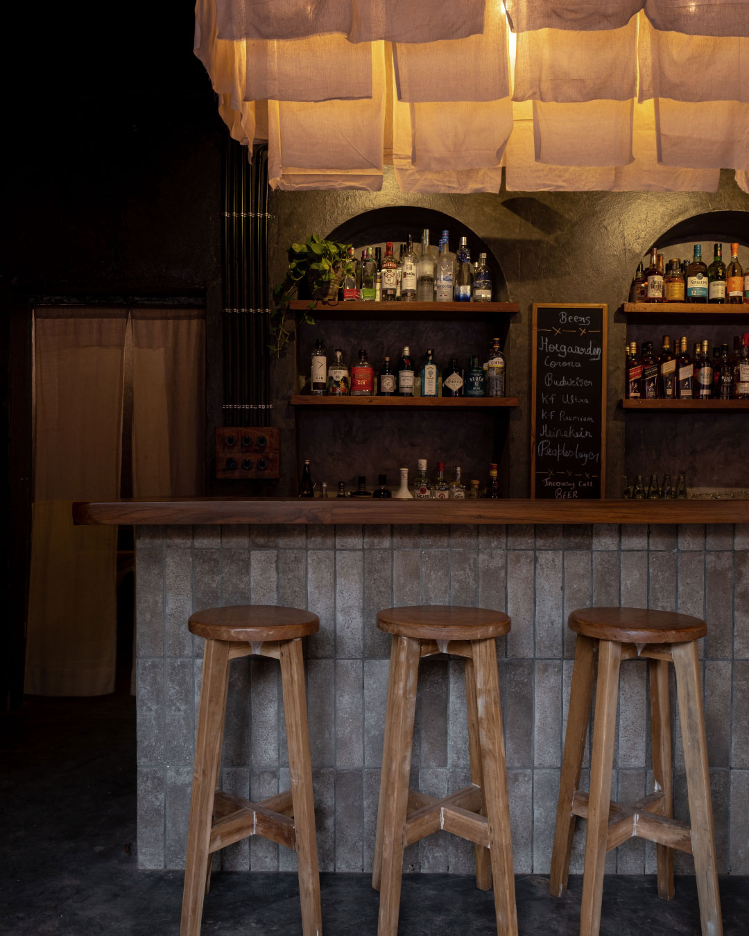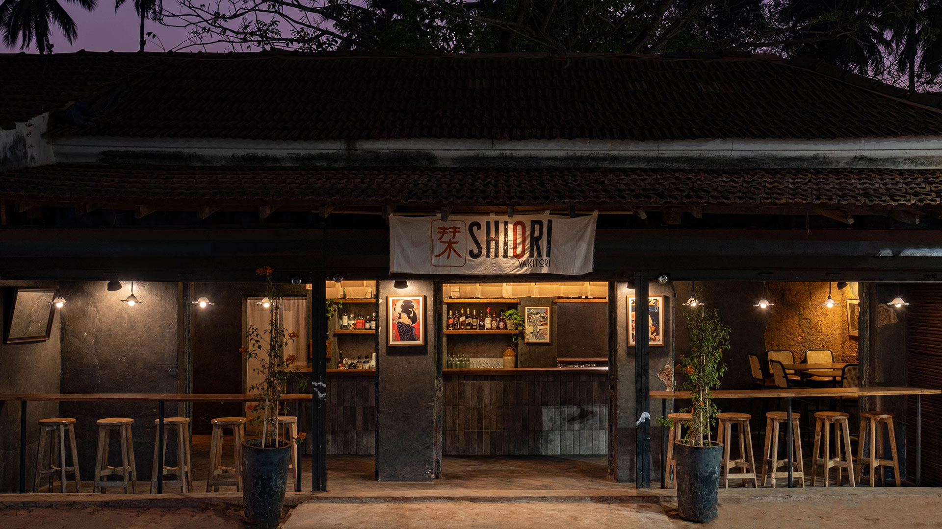 Shiori is a yakitori bar set in a 132 year old Goan structure. Through this project, the intent was to maintain the nostalgia by preserving the integrity of the structure while introducing new elements that helped transform it to a fresh new yakitori bar. The street bar is designed to take maximum advantage of its small footprint but large frontage. The conscious choice of dark flooring, moody wall finishes, and wooden countertop are reminiscent of a Japanese izakaya.